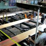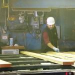The saw contains a series of blades spaced 24 inches apart. The trimmerman decides which blades are up and which are down in the cutting position—and so, how long each piece will be. Like the sawyer and edgerman before him, he optimizes value by cutting around the worst defects and producing desirable length pieces.