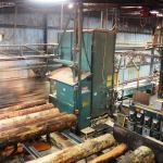 Logs enter the mill via a platform called the live deck—live because of a chain-drive mechanism that allows it to move and sort logs (