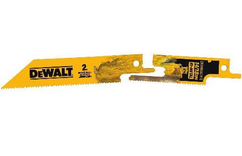 With DeWALT’s new BREAKAWAY™ Reciprocating Saw Blades you get two blades in one. Designed to break at a common wear-point, the spent part can be discarded and then the unused portion can be loaded back into the tool for use. These blades come in 6” (DWABK461418) which breaks into 4” and a 9” (DWABK491418) which breaks into a 6”. The blades have a thick kerf approx. 0.042”, which the manufacturer says improves durability. Additionally, each blade has a 14/18 TPI variable tooth pattern for common metal cutting applications that include: glavanized pipe, copper pipe, conduit, metal studs, and EMT. A 3-pack of 6″ will sell for $8.99 and of 9″ will sell for $9.99. Other packaging configurations will also be available. They’ll be available this Spring. Check out DeWALT for more information.