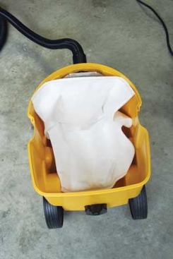 When debris enters a HEPA vacuum, it's captured in a collection bag – usually paper (above) but sometimes fleece (below). Fleece bags cost more but are tougher and can be filled more completely without a loss of suction.
