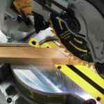 LED lights and laser guides are nice features, but typically don’t help when you’re cutting outside in daylight. Using something of a combination of the two, the DeWalt features a cut-line light that projects a shadow of the blade against the material. This light goes on automatically with each pull of the trigger or can be switched on manually. Since you have to move the blade right against your material to line up the shadow of the teeth with your pencil line, I find it easier just to sight along the outside of a tooth like I do with all miter saws. But the light does help in shadowy indoor conditions.