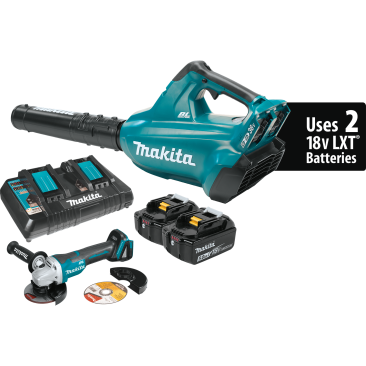 Makita 18v X2 36v Brushless Blower. Makita has a line of 2 battery 36v tools and so far they have been impressive to use. This brushless blower has plenty of power for our use delivering 473 CFM at 120 mph. On the handle is a 6-stage dial to adjust and then lock in speed.