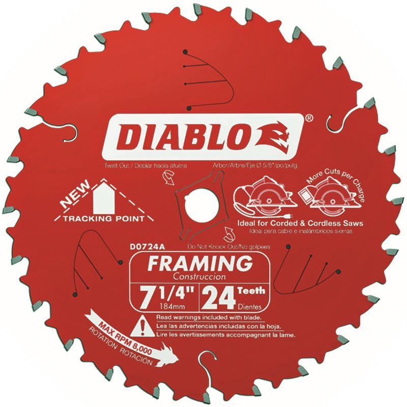 Diablo has a new 7 1/4-inch framing and demolition blade available. In a recent demonstration, I watched the blade sail through a torturous sandwich of lumber, lag bolts, and a few layers of asphalt shingles. This doesn’t represent what you would necessarily cut, but it shows the blade’s ability to survive in more abusive conditions than you may ever run across.
