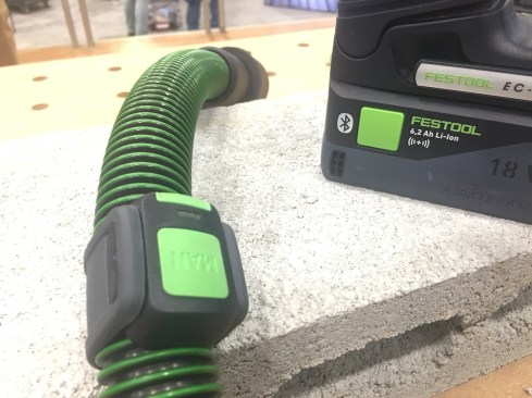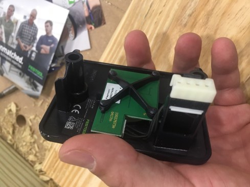 Festool had a couple of new products available at its booth at the JLC Live trade show last week, including a plug-and-play Bluetooth setup for its CT dust extractors. The system, which includes a remote control, revolves around a small plate that makes a CT dust extractor instantly Bluetooth-enabled. The Bluetooth module plate replaces the cover plate that sits on the front of the CT dust extractor just next to the tool-operated power outlet. Once the Bluetooth module is installed, the vac can be turned on cordlessly either by the included remote or by a cordless power tool equipped with the new 18V Bluetooth battery.