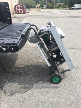 It’s a little awkward getting into the back of a pickup, so if you work alone and don’t have a trailer that’s something to be aware of. I have a Ram 1500 EcoDiesel. The saw’s handle barely grabs the tailgate when it’s down.