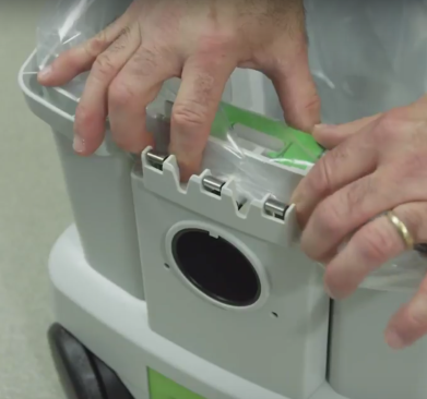Use the clear disposable bags, not the self-clean fleece filter bag. These bags have a white box and “x” cut on the sides. Keep the bag below the white bin of the extractor (where the top clicks in). Those “x”s help the bag “breathe” during use, allowing it to fill with dust instead of air for maximum fill capacity.
