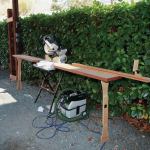 The Paulk Miter Stand was designed by Ron Paulk, a home builder and finish carpenter in Anacortes, Wash. Made of ½-inch and ¾-inch AC plywood, it features a roomy 18-inch by 78-inch top with a place for the saw to mount in the middle. Each side is a box with multiple openings for convenient tool storage, and you can attach an ingenious homemade flip stop to the fence. Extension wings dovetail into both ends of the table for supporting longer stock, and everything is supported by adjustable-height plywood sawhorses that double as convenient lumber racks. Though it’s designed for the Festool Kapex saw, Paulk says the stand can be modified to fit most other brands. It takes about six hours to build and the materials cost about $100. For $10, you can order the plans at paulkhomes.com and receive them by email. View a demonstration by searching “Paulk Miter Stand” on YouTube.