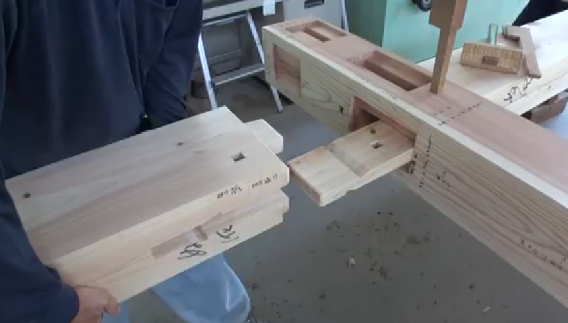 The tradesmen in the video below are testing the fit of a four-way mortise and tenon joint. The way the pieces connect and are held together with wedges is simply insane—in a good way. This kind of joinery is used only for high-end projects, such as temples. That said; joinery is more common in Japan than in the U.S., where timber-framing was long ago replaced by stick framing. Japan stuck with their version of timber-framing, modernizing it without completely doing away with the use of joinery. House frames are typically produced in factories with CNC machines cutting the joints. Framers in the U.S. and Canada build the house. A Japanese framer is more of an assembly worker—assembling piece that were cut off-site.