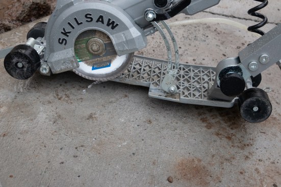 Skilsaw has taken its long history of building durable wormdrive motor and gear configurations and adapted it to cut concrete. A saw is paired with a rolling plate, water delivery system, vacuum attachment, and adjustable handle.