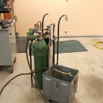 My welder is also equipped with a pressurized tank filled with an inert gas (typically 75 percent argon and 25 percent carbon dioxide – MIG stands for “metal inert gas”). When I pull the trigger to start the wire feed, gas flows out of the gun into the weld area to shield the weld puddle from atmospheric contamination. It costs about $200 to equip the welder with the optional tank, and about $30 to refill the tank.