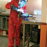 There are several different welding methods. In high school, we learned to arc weld with a stick welder. With arc welding, current from an AC or DC power supply is used to create an electric arc between the base metal and a consumable electrode – the “stick.” Made of a material that is compatible with the base metal, the electrode rod melts into a small puddle that is deposited in the weld area, fusing the joint together.