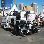 Concrete pump trucks – makes you wonder how they got all of the boom arms in there like that.