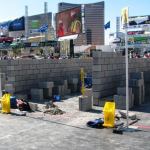 Masons and tenders hard at work in the Bricklayer 500 contest. T…