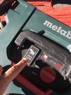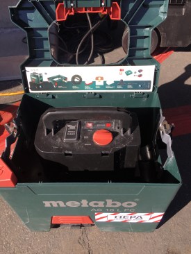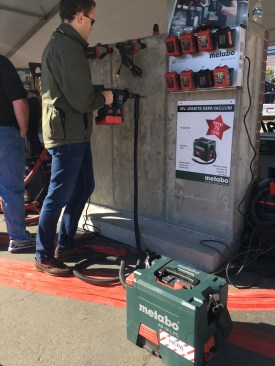 Metabo accounced its new cordless 18V 75 CFM dust extractor at the 2018 World of Concrete. It features manual filter cleaning (and a HEPA filter) and 2 gal capacity. It’s not designed for grinding and concrete cutting applications where heavy amounts of dust is created, but is designed for drilling and general clean up. The extractor has two modes: Boost and Eco. In Eco mode, it will run at about 37.5 CFM (1/2 the max cfm) for twice the runtime on a 7Ah battery – about 32-40 min. The case has enough room to store the hose. In Boost mode you’ll get the full 75 CFM and about 20 min. runtime. It will sell for less than $200 and will be available in April. There will be a trolley available for it as well so you can roll it round the jobsite.