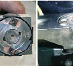 You can adjust the bottom blades’ depth-of-cut by locking the spindle and using a spanner wrench to turn a screw on the tool’s head. An arrow — also on the head — points to a scale that indicates how deep the blades will cut. The blades can be set to cut between 0 and .3 mm deep — about three times the thickness of a dollar bill.