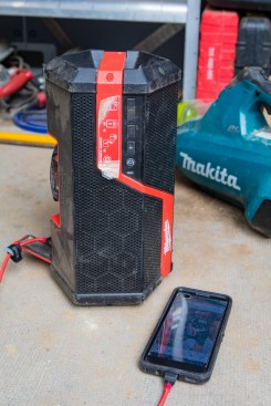 While I love this little unit, it isn’t without its flaws. Though Milwaukee claims it has a range of 100 feet, I have not experienced that with my phone. I’d say 50 feet is the maximum usable range before losing connectivity. It also doesn’t have a tuner for AM/FM. For me, this is not a big deal, because many stations stream over the internet and have apps, so I stream through my device.