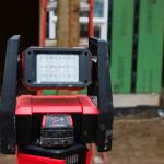TrueView M18 LED Flood Light. This small cordless LED flood light has 3 modes for light output. The highest mode puts out 3,000 lumens, medium put out 1500 lumens and low puts out 650 lumens. It can either be used cordless, when equipped with M18 batteries, or it can be plugged in. Milwaukee claims that the color of the LED light is a neutral white with a high color rendering, which means the color of the light is more “realistic”. My opinion is that it is a more comfortable light. The greenish tint from the metal halide in our Wobble Lights has always felt odd to me. Yes it illuminates the area, but I much prefer the color of light from the LEDs in the TrueView.