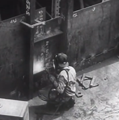 The film centers around the major welding method of the day, gas oxy-acetylene welding. Although this is considered largely obsolete for production work today, it’s good footage of the basics of any welding method. The film moves on to spot welding, then stick welding, and then to describe various applications of these methods. The gas welding of a steel airframe is interesting.