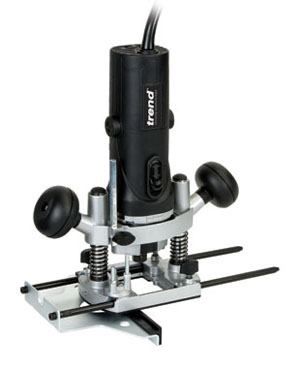 The Trend T4EK 1/4-inch shank, portable plunge router has a 1.1 hp variable speed motor (11,500 to 32,000 rpm) and weighs 7.7 pounds. Features include a spindle lock for easy cutter change, a three-stage turret depth stop, an adapter plate for screw-on style guide templates, and a removable base with 1-5/8-inch collar for carving and die-grinding uses. The T4EK also has Trend standard pattern fixing holes in the base, an adjustable twin-rod side fence for guiding along a straight edge, and a bolt-on dust port. Price: $129. 270-872-4674.