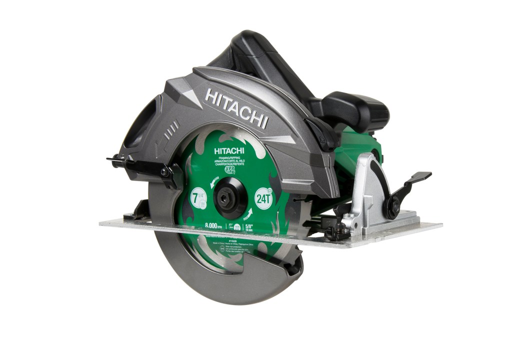 Hitachi’s C7BUR 7-1/4-inch sidewinder is designed to be powerful and fast. Dubbed the “RipMax”, the saw’s 15-amp brushed motor runs at 6,800 rpm, which is said to be 40% faster than competitive models. It features an aluminum base, an electric brake, and a dust blower function for clearing the cutline. When outfitted with a fiber-cement blade and equipped with an optional dust collector shroud connected to a vacuum, the unit complies with OSHA’s silica rule. A unique cord hook holds the cord off to the side of the handle to keep it from getting snagged as you make a cut. It has a 2-7/16-inch cut capacity at 90 degrees and 1-7/8-inch cut capacity at 45 degrees. The saw’s bevel capacity is 0-45 degrees. Cost: $170. The saw is also available in a version without an electric brake (model C7UR), which has a bevel capacity of 0-55 degrees and costs $150.