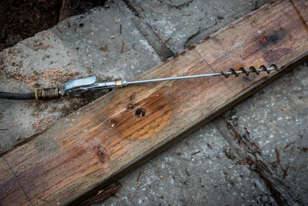 About a year ago I was on a project where we had to retrofit a large number of hold-downs by epoxying threaded rod into holes drilled in an existing concrete foundation. An inspector was there when we installed the rod to verify that the holes were clean, we used enough epoxy, and that we used the kind of epoxy specified by the engineer. He said he routinely visits sites where the holes aren’t clean enough—then he showed me a tool that makes it easier to do the job right. It’s called the Vortabrush, an extension for a compressed air gun with a brush around the end of it. It allows you to brush and blow the hole clean in a single operation (video below).
