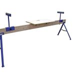 Crescent City, Calif., carpenter David Montez also likes this stand. He drilled a hole through each sawhorse foot so he can fasten the stand to his scaffold planks. Two leg lengths are available, and you have the choice of either an imported or a (pricier) domestic version.