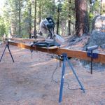 The Trojan Workcenter has been around longer than some carpenters. Mitch Greenlaw, owner of Greenlaw Construction, in Twain Harte, Calif., has had his Workcenter for 20 years and still uses it almost every day. The concept is simple: Two pairs of collapsible legs firmly clamp to a 2-by rail, which you supply; there’s an MDF saw table and two adjustable support rollers that clamp to the top of the rail. Your choice of lumber determines the height and length of the stand, so it’s incredibly versatile. Assembly takes minutes, and the individual parts minus the 2-by can store on a shelf.