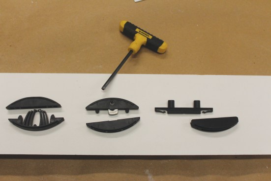 Access for the hex key to the lever mechanism that engages the Clamex connector is through a small, 6-mm hole.