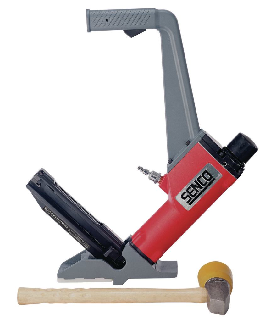 At just 11 pounds, the Senco SHFS200 mallet-actuated pneumatic hardwood flooring stapler delivers 547 inch-pounds at 100 PSI. Its 21 1/2-inch height makes the tool more comfortable to use while providing increased control. Users can easily alternate between 1/2-inch and 3/4-inch flooring thicknesses. Other features include a safety trigger, automatic staple angle and direction, and a top-loading magazine. Priced at $299. senco.com