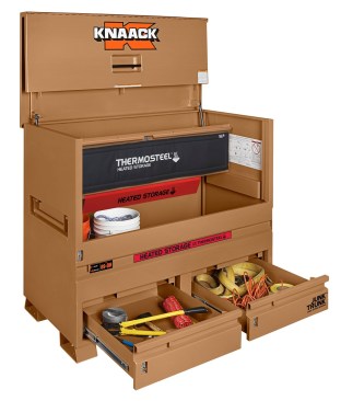 While it’s warming up in the South, temperatures might still be chilly for those up in the Northeast and Midwest. Knaack’s new heated storage unit, Thermosteel, assists in those colder climates. Knaack advises users to plug in the unit when jobsite temperatures reach 40 degrees or below in order to keep tools safe; Thermosteel can maintain interior temperatures of 70