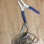 In the past I used extra nails to hold miters closed while the g… In the past I used extra nails to hold miters closed while the glue set. Now I use these small but powerful miter clamps. They aid in preassembly and eliminate the need for extra face nails – which is a plus when you’re doing high-end work. You use the spreader tool to get the clamps open and then release them on to the outside of the mitered pieces. They are very stiff (that’s why they clamp so well) so be careful not to get your finger caught between the jaws.