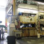 This progressive die metal stamping press is punching out steel pieces for use in various tools—including wire strippers.