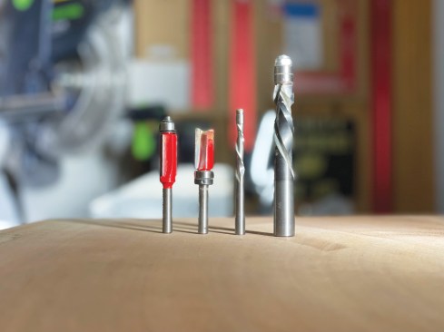 When you’re installing or changing a bit, always unplug the router or remove the battery. This is a good time to inspect the bit for damage or visible dullness. When inserting the shank into the collet, don’t bottom it out but leave a gap of about 1/4 inch between the end of the shank and the spindle as you tighten the collet nut. Some routers require two wrenches to loosen and tighten the collet, while Festool and many other manufacturers now equip their routers with some sort of spindle lock mechanism, which is a lot faster and easier to use.