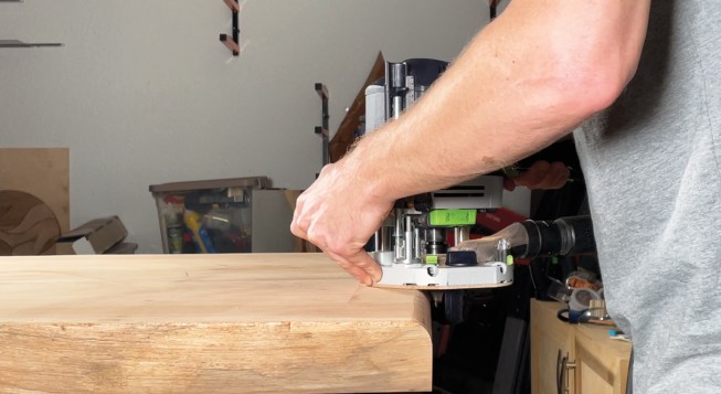 I use my trim router for smaller mortises and general template work because it’s easy to control, which also makes it a perfect entry-level router. I like to use it with smaller bits, like a 1/8-inch-diameter round-over where I can just set the bit height and get to work.