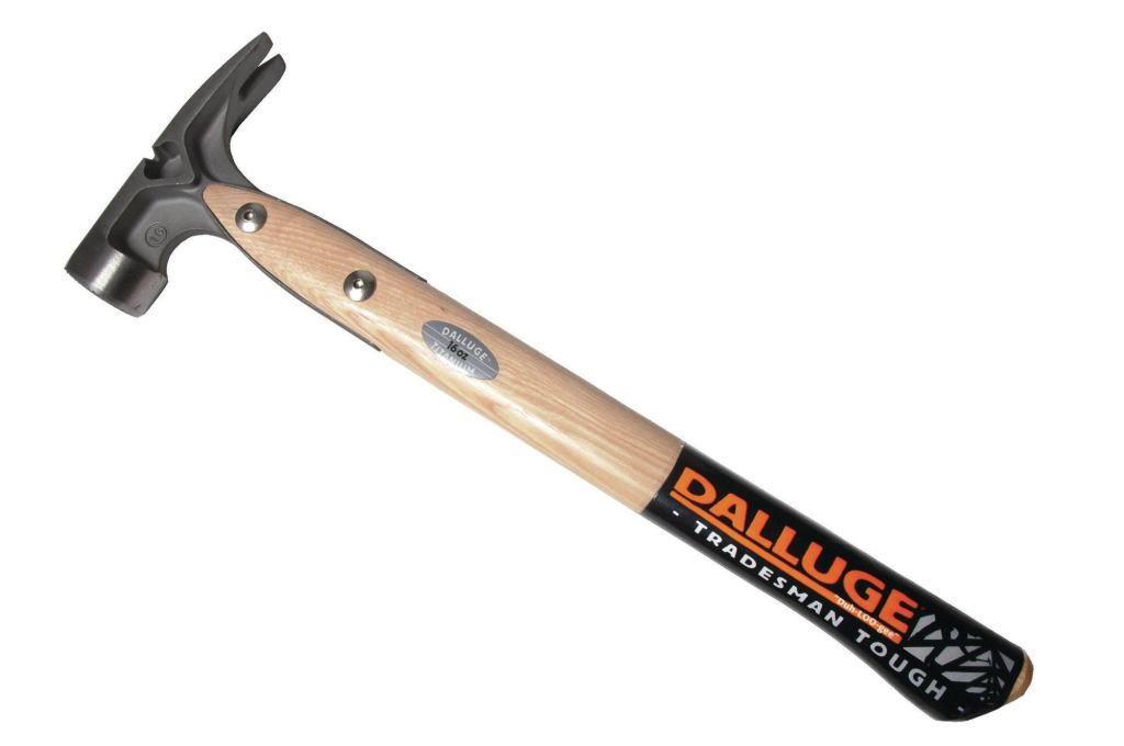 Dalluge’s new DDT 16-ounce hammer features a magnetic nail starter that can hold standard and duplex nails, making the tool ideal for formwork. The titanium head absorbs shock and extends down over the front and back of the hickory handle, protecting it from overstrikes. The hammer pulls nails with the short rear claw or the side pullers if extra leverage is needed. Available with a smooth or serrated striking face. Price: $120. COO: USA. 815.648.2446. dallugetools.com.