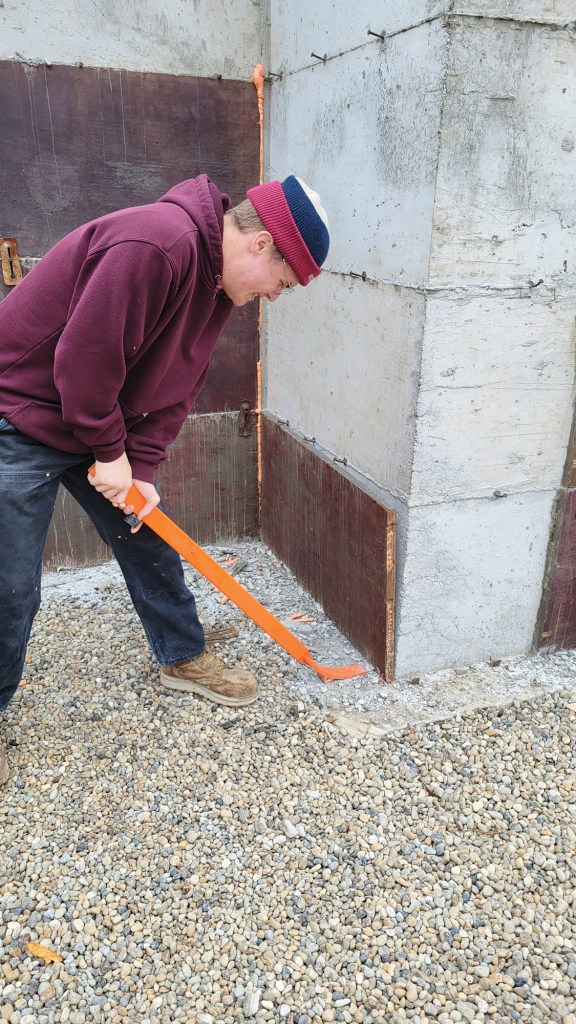 There is a full-size Form Buster with a 48-inch-long handle and a 12-inch-long by 3-inch-wide curved blade. The Mini Form Buster that I ended up ordering is a little smaller than the Burke bar, with a handle measuring 36 inches long and a 12-by-2-inch blade, but I consider it an upgrade because it has a couple of additional features that work well. One is the “knuckle-saver bumper” under the handle, a welcome addition. I can’t tell you how many times I’ve smashed my knuckles while stripping foundation forms; with the Form Buster, the bumper leaves a small space between the handle and the surface that momentum or a heavy form is trying to drive your hand into.