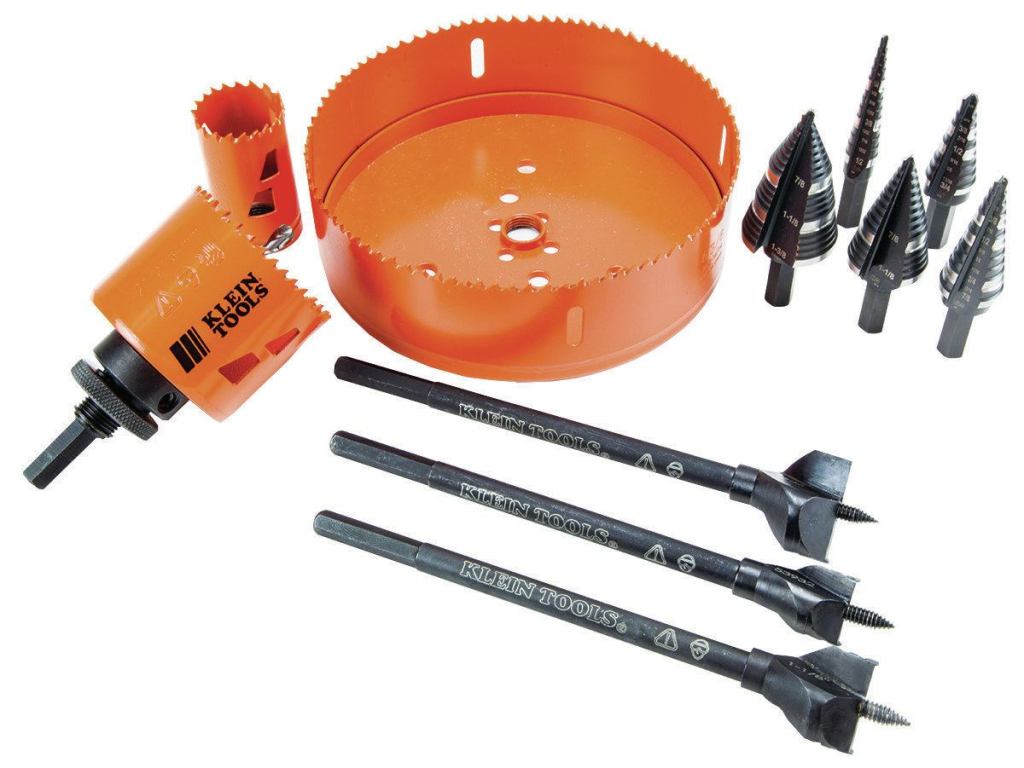 Klein Tools has expanded its line of hole-making tools to include bi-metal hole saws, double-fluted step drill bits, and wood-boring bits. The tools are designed for a variety of materials—steel, wood, drywall, plastic, and tile. The bi-metal hole saws can cut steel and stainless steel as well as more-forgiving materials. Multiple slots make it easier to pry out the round blank after the hole is cut, and thick back plates allow heavy use, according to Klein. Sizes range from 7/8 inch to 6 3/8 inches. The double-fluted step bits, which have a 3/8-inch hex shank and a graduated series of steps, come in several sizes; the #15, for example, has a range of 7/8 inch to 1?3/8 inches. The new wood-boring bits have a low-torque design that reduces wrist fatigue, Klein says. Sizes range from 7/8 inch to 1?3/8 inches. Klein has also upgraded existing products such as carbide hole cutters, ship-auger bits, and flex drill bits. Klein Tools, kleintools.com