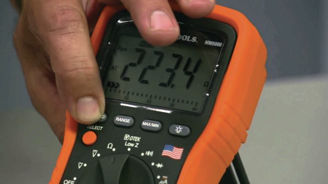 The backlit digital display is large and clear and is easy to read in both dim light and bright sunshine. The viewing angle of the display is good except when the backlight is on and one looks at the display from above. At certain angles, the screen is essentially unreadable, forcing the user to change position or move the meter. Because the meter is often positioned below the user (inside an electrical panel or on a bench), this can be annoying.