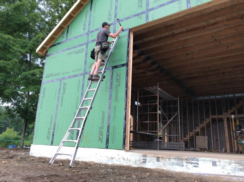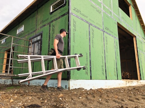 Gorilla multi-position ladder. I can’t discuss working at height without mentioning my ladder of choice, a Gorilla GLMPX-22 multi-position ladder that I always have with me in my truck bed, tucked safely underneath my cap. As I’m the business owner, my job typically involves doing whatever is needed to get the job done. I may need a ladder to complete a punch list task, or look at a customer’s roof, or help the guys set a window. I like the versatility of having a single ladder that can do most of these tasks, by functioning either as a stepladder with a 13-foot reach or as an extension ladder with about a 22-foot reach. I also like that it weighs only about 40 pounds, even though it’s a type IAA ladder with a 375-pound capacity.