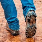 This is a light hiking style boot that has been upgraded for the jobsite with the addition of steel toes. This boot is waterproof, and has a grippy slip-resistant sole and wicking inner lining. They are comfortable but being waterproof, they don’t breathe as well, so I would not want to wear them in hot weather. In our climate this is a great boot for spring and fall weather, where it rains on and off and we have to walk through puddles.