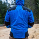 Even though the jacket is breathable, I find I still get warm quickly and my safety glasses fog up. I can unzip the armpit area to allow for better circulation. The jacket also has a drop hem so it is slightly longer in the back, for better protection. Throughout the jacket are small reflective stripes. The hood is large enough to wear a hat under and not feel tight, and it is adjustable. I broke one of the drawstrings on the first day, but that hasn’t been a bother.