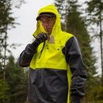 This coat is lightweight, has a nice big pocket for my phone, and the zipper opens up quite a bit – a helpful feature since this coat isn’t breathable. I also find the adjustable hood to be nice and big so I can wear it over a beanie or ball cap. It also has a drop tail which keeps my backside covered. It is available in his vis yellow (shown), or orange.