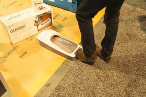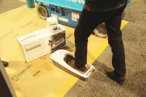 Rarely do you hear clients say “don’t worry, you can keep your boots on” when you show up to begin working inside of their homes. Even if they say it, it almost feels like a test: do you care enough to not traipse dirt and mud in while you work. A variation on the traditional booties, Tidy Trax, has been around for a while. Made to fit over your boots, they offer a simple, hands-free way to add a protective layer between your feet and the floor. Trimaco has their own version of wearable floor protection: the E-Z Guard system. Though it’s not new, we got a chance to take a look at the product at this year’s WOC show earlier this month.