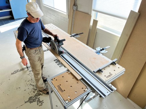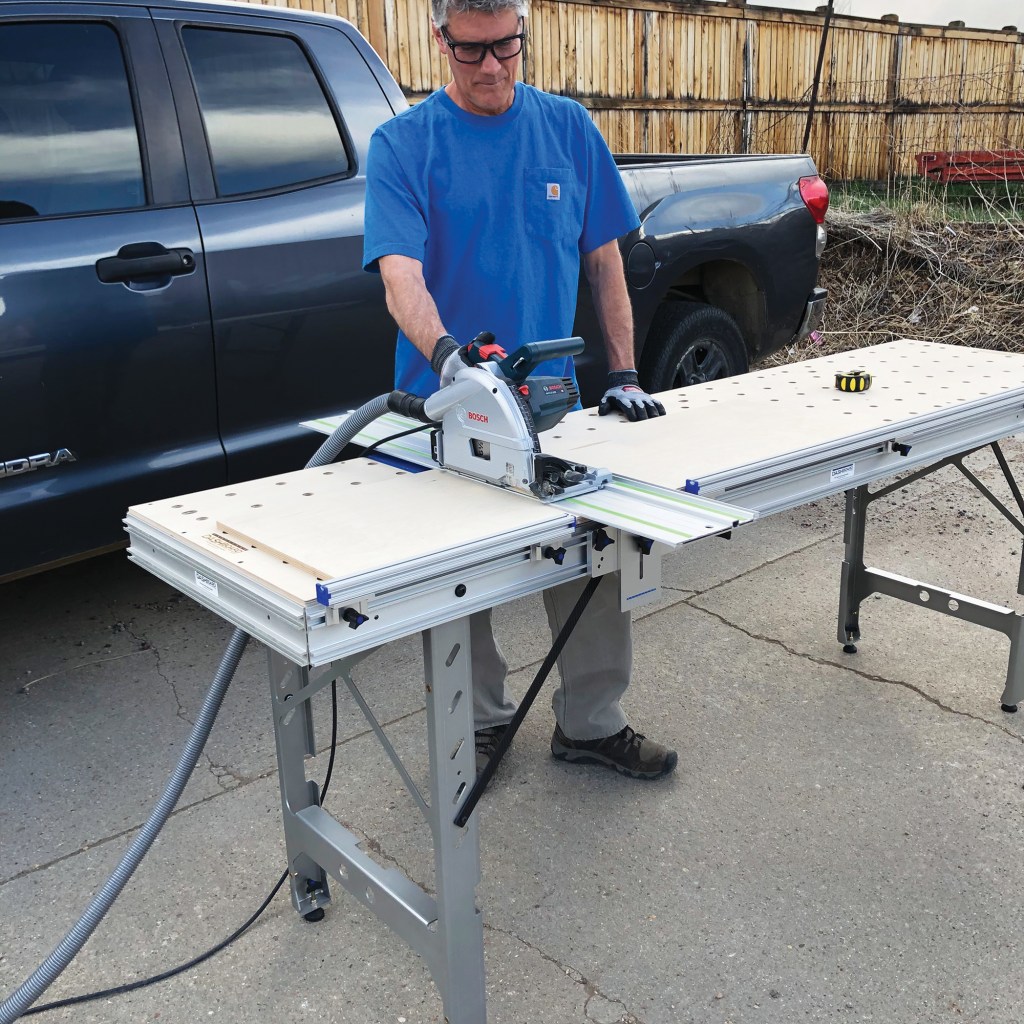 Adding the system’s Outriggers to the workbench provides additional support for ripping sheet goods.
