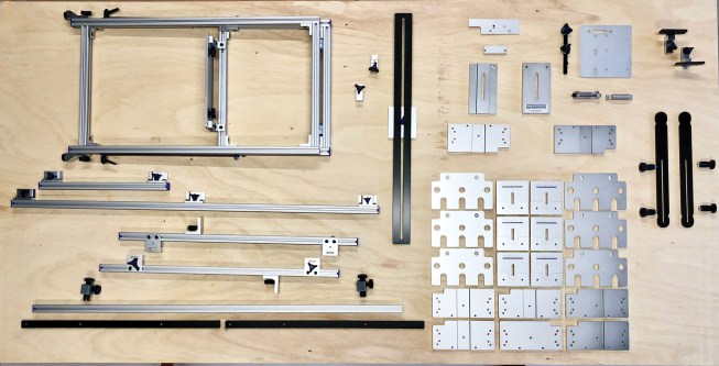 The bench itself comes preassembled and is very sturdy, something severely lacking in the commercially available setups I’ve used. For example, the top is made from Baltic birch plywood instead of MDF, and the amount of extruded aluminum in the frame puts any competitors to shame. At almost 8 feet long and 24 inches wide, it is sized for breaking down sheet goods efficiently while providing full-length material support. Any of the parts that aren’t milled aluminum (parts vary from 1/4 inch to 7/16 inch thick) or extruded aluminum are made from carbon fiber, which is extremely durable and lightweight.