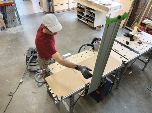 Performance. The Dash-Board is designed to make quick work of breaking down sheet goods. For crosscutting, it has guide-rail brackets made from 1/4-inch plate aluminum that allow you to quickly hinge the track out of the way when you need to move the workpiece, and then simply drop the track back down into a pin on the opposing guide bracket, guaranteeing a square, repetitive cut every time. You accomplish this by squaring the side-mount fences to the track upon initial setup. The two-piece design of the fence ensures material support on both the left and right sides of the cut, which combined with the design of the guide-rail bracket, provides continuous support even at the point of cut. Using the carbon fiber flip stops on the fence makes repeat square cuts an easy task. I find this especially useful in cabinet construction as I can cut all my shelves to exact tolerances without needing to measure anything but the initial shelf.