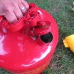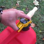 The rule didn’t affect me until someone stole my pre-ban cans and I had to buy new, compliant ones. Since these cans did not have that little vent in the back, they chugged and spilled when I used them. And they were ridiculously difficult to use; you could do your taxes in the time it took to transfer 5 gallons from one of these cans and you’d need three hands to do it because you must hold a small button back to get the spout to pour—while supporting a heavy can in an awkward postion. Some CARB compliant cans have spring loaded nozzles that you have to rest on the lip of the gas tank at just the right angle to allow the fuel to flow. Using CARB compliant cans is tedious at best and guaranteed to be a frustrating endeavor.