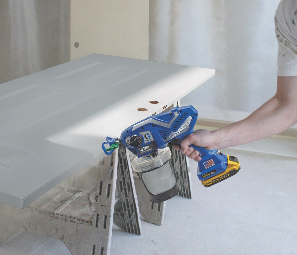 Prep-to-Finish pro painter Scott Burt of TopCoatReview recently reviewed Graco’s new handheld sprayer line, called Ultra, which comes in a couple of reasonably-priced options particularly suited to remodeling contractors. Burt likes the convenience of handheld sprayers for small jobs like built-ins, doors, and spindles, or anything else that would otherwise take a longer time with a brush, and not necessarily justify pulling out a large sprayer setup. Available in either a cordless or corded version (and a cordless Ultra Max, for hot solvents), the Ultra handhelds deliver 2000 PSI of spray without the hoses. Burt likes the cup assembly of this series, which is made of two components: an open housing that holds a disposable, clear flexible liner makes priming a simple as squeezing the air out via a small valve on top of the cup. Because of this setup, the sprayers can be used at any angle, including upside down. The FFLP tip – a new tip series from Graco particularly useful to pro painters due to its compatibility with other airless sprayers – allows users to work at a lower pressure, producing less overspray and a better-defined fan pattern. Pressure can be dialed in between 500-2000PSI, offering extra control. The Ultra Corded model (17M359) comes with a case, the RAC X FF LP 514 tip, and 4 liners. Cost: $400. The Ultra Cordless, model (17M363) comes with a case, the RAC X FF LP 514 Tip, 4 liners, two DeWalt 20V Max batteries, and a charger. Cost: $500. Burt says you can expect to get about 4 cups (approximately 1 gallon) worth of paint on a single charge.