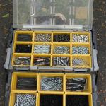 It’s important to me to have a big assortment of screws on han… It’s important to me to have a big assortment of screws on hand because I want to be able to deal with any situation that comes up without having to go to the hardware store. I usually keep screws in Sortainers but need to carry a larger variety in my cart so I purchased this inexpensive Keter brand cantilevering box at the local super store.