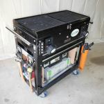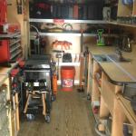 The cart stores in the back of my box truck and when we arrive on site we roll it down the ramp and into the building. The cart is convertible in the sense that I can swap tools out to suit the specific needs of the job. But most of what’s on the cart is there for every project. The slideshow to the left shows how I outfitted the cart to suit my needs.
